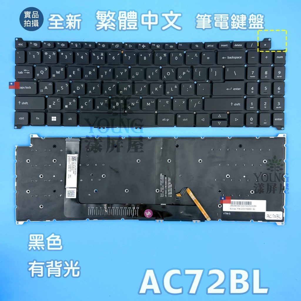 適用於 宏碁 Acer A315-41 A715-72 全新 繁體中文 背光鍵盤 帶C殼