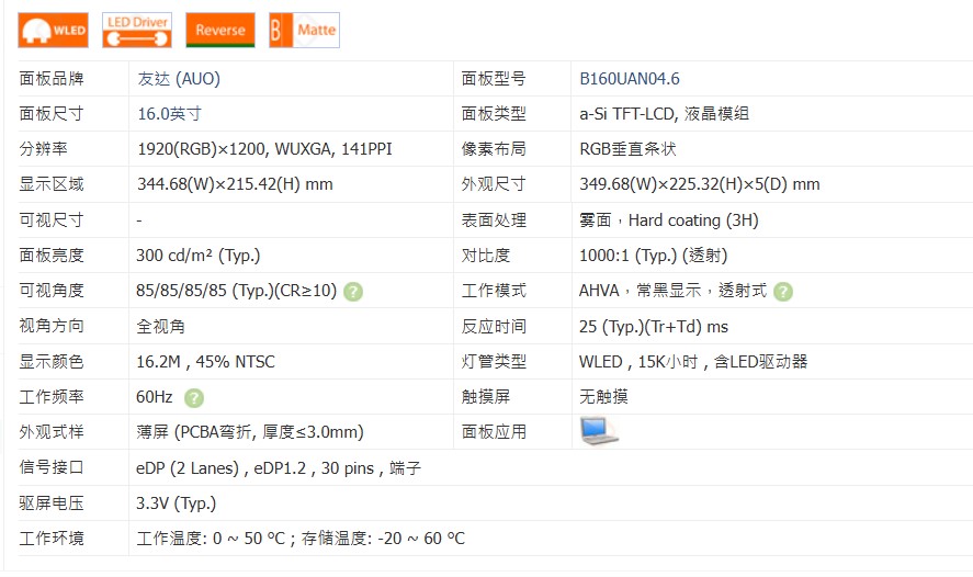 LP160WU3-SPB2 MNG007QS2-2 NV160WUM-N4B B160UAN04.6