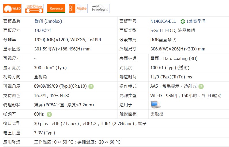N140JCA-ELL N140JCE-EL1 NV140WUM-N4E M140NW4D R6 B140UAN04.4