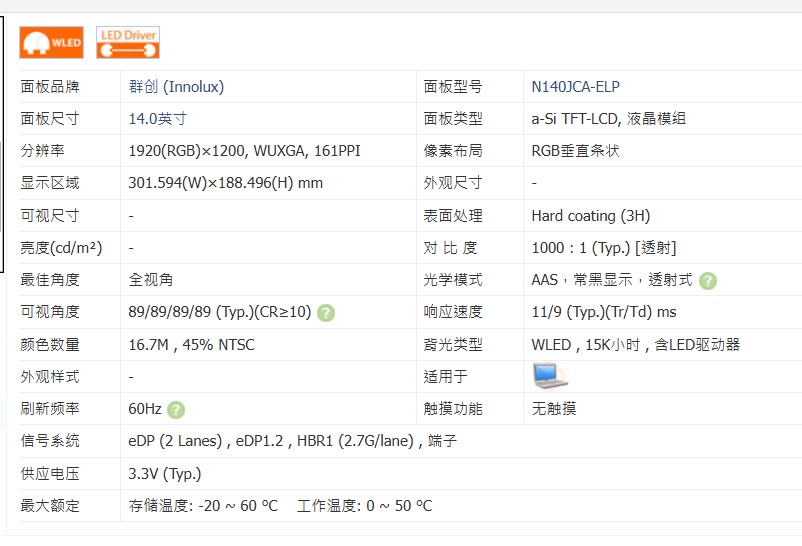 ThinkBook 14 G7 IML N140JCA-ELP NV140WUM-N4E -N6T * 接口中間