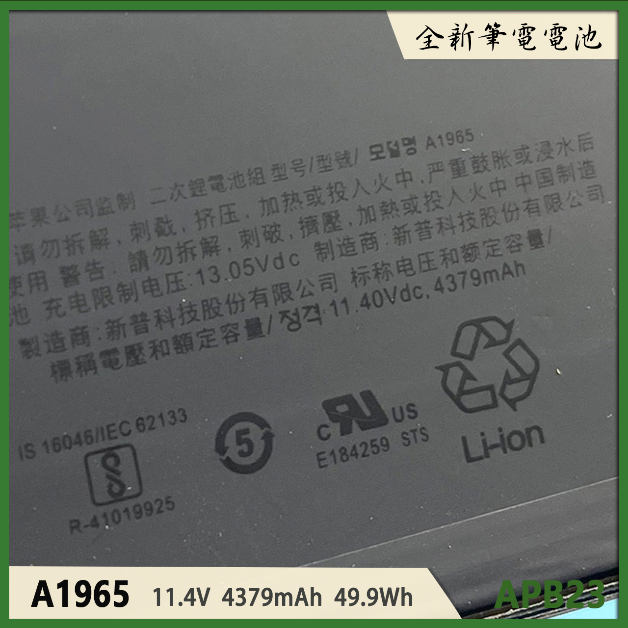適用於 APPLE 蘋果 MacBook A1932(2018~2019) A1965 全新 筆電 電池