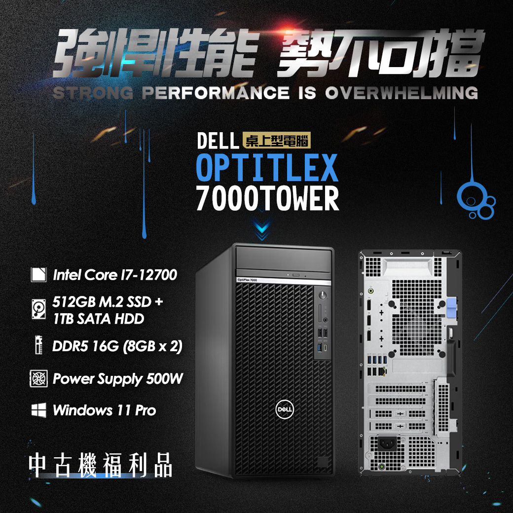 Dell戴爾 OptiPlex 7000 Tower I7-12700 / 16G RAM / 512SSD+1THDD / WIN11 桌上型電腦 桌機 *中古福利品