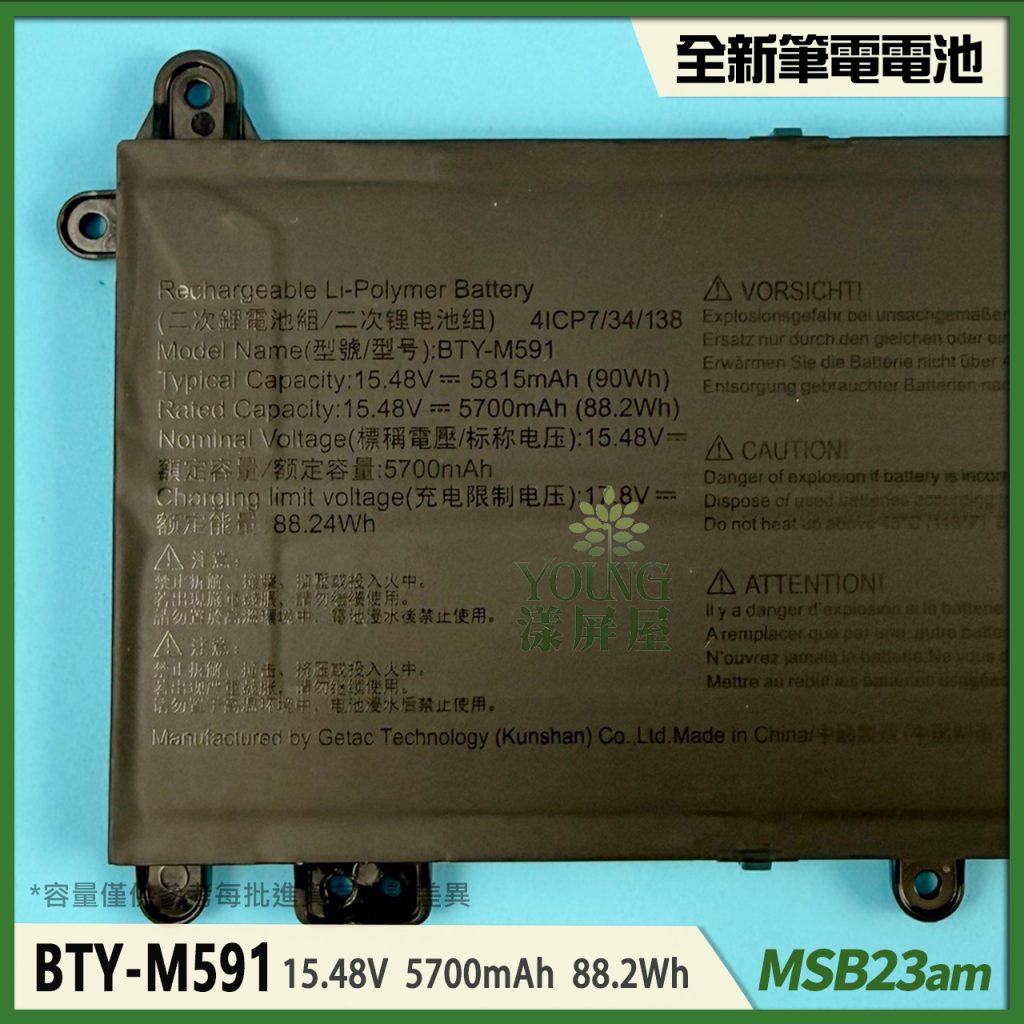 適用於 MSI 微星 Modern 15 F13MG MS15Q1 Katana 17 B13 MS17U1 /BTY-M591 筆電 電池