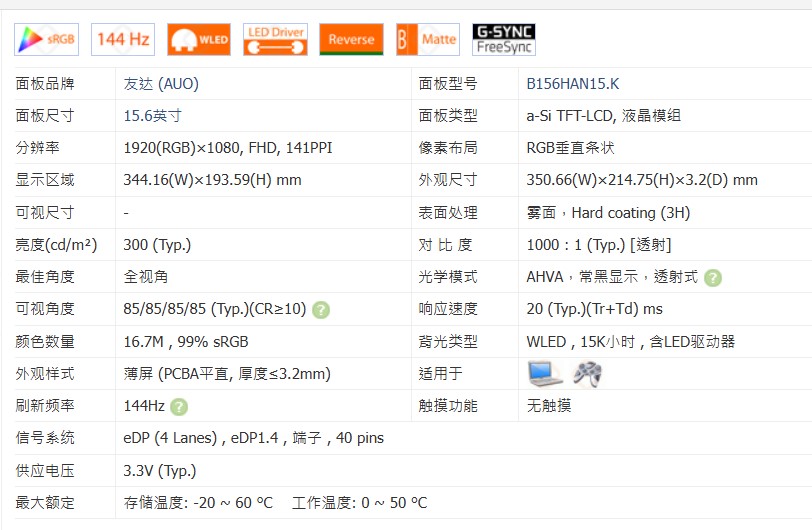 B156HAN15.K 聯想 LOQ 15IAX9E 72%