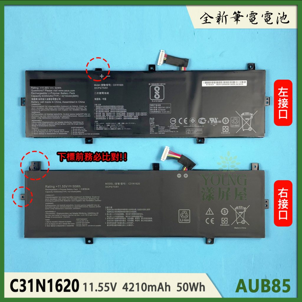適用於 ASUS 華碩 UX430 UX430U UX430UQ C31N1620 筆電 電池 左接口